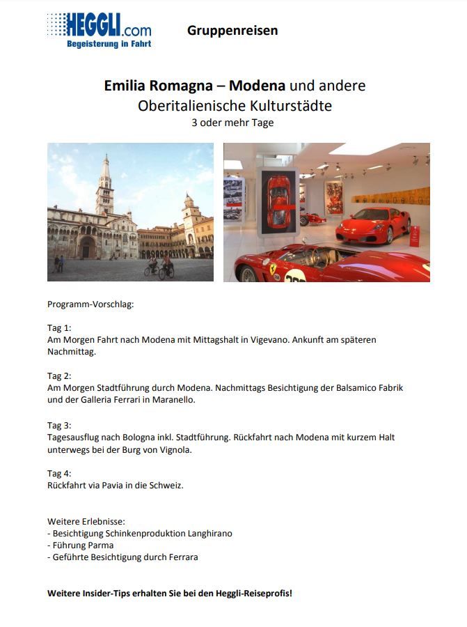 - Stadtbesichtigungen in Modena, Bologna, Ferrara